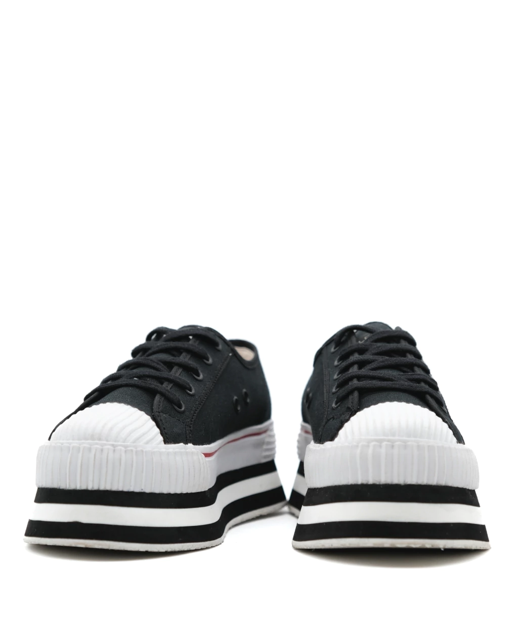 La capellada esta realizada con una loneta forrada de algodón, presenta ojalillos al tono y cordones. El material de las plantillas es de PU, lo que las hace más confortables y la suela es de caucho vulcanizado, por lo que son más resistentes y duraderas.