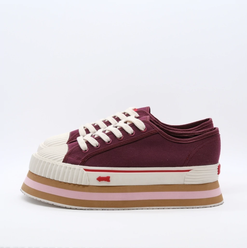 La capellada esta realizada con una loneta forrada de algodón, presenta ojalillos al tono y cordones. El material de las plantillas es de PU, lo que las hace más confortables y la suela es de caucho vulcanizado, por lo que son más resistentes y duraderas.